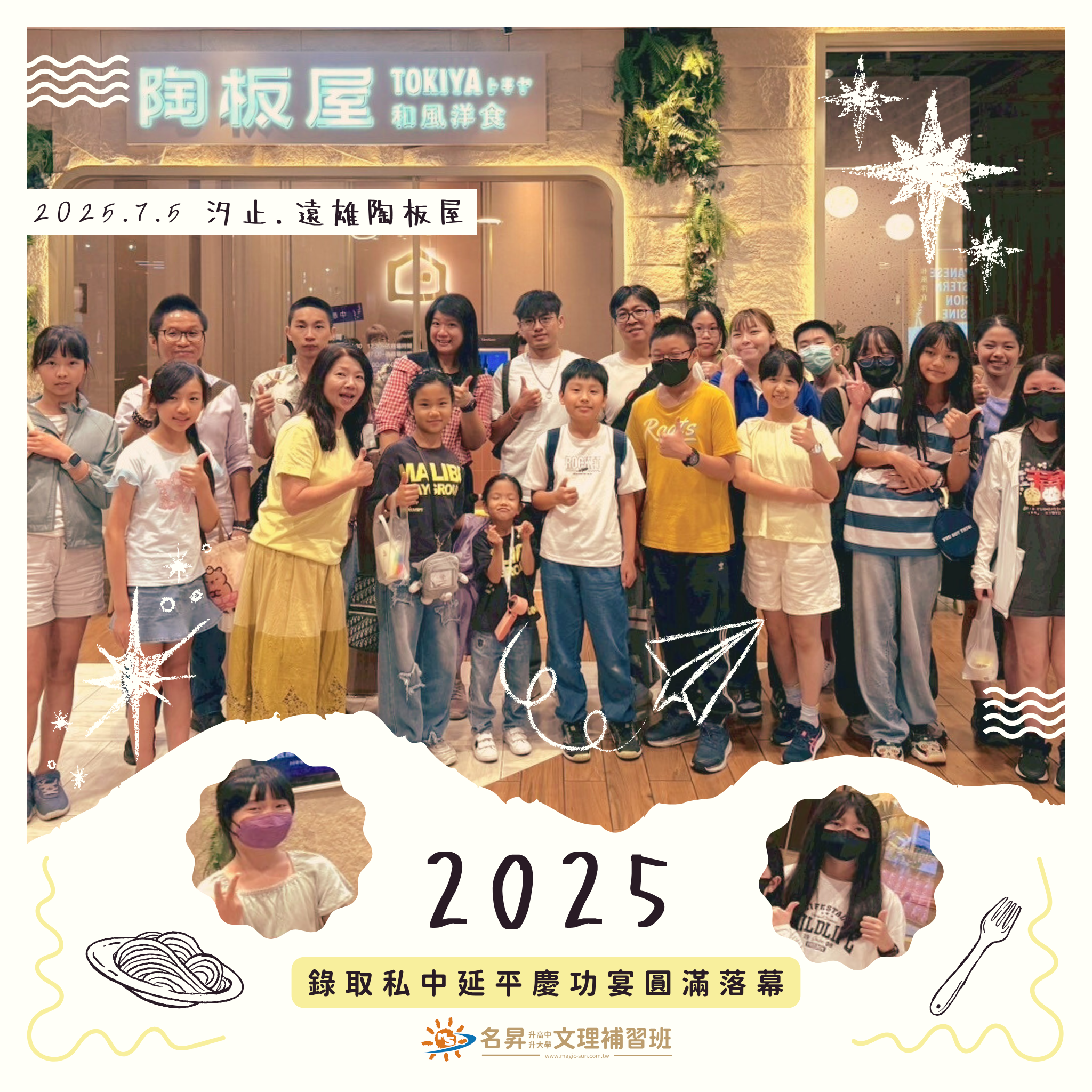 2025-07-25 📣 《暑假Fun起來》-2 本班公告 \☀精彩收錄內容☀/ 🔢 數獨腦力大挑戰 🔢 🌈 彩虹橋科學實驗 🌈 🦁 六福村一日遊 🦁 READ MORE . 作者: 作者: magicsun 分類: 最新公告, 本班公告 本班公告 \☀精彩收錄內容☀/ 🔢 數獨腦力大挑戰 🔢 🌈 彩虹橋科學實驗 🌈 🦁 六福村一日遊 🦁 READ MORE . 🔢 數獨腦力大挑戰 🔢 x 🌈 彩虹橋科學實驗 🌈 x 🦁 六福村一日遊 🦁 這週課程依然帶著滿滿挑戰與驚喜,一起來看看吧—— 學生們先動腦破關,在數獨遊戲裡激發邏輯力; 接著透過紙張的毛吸現象,動手打造出繽紛夢幻的彩虹橋; 而後前進六福村,動物園與遊樂園一次玩透透,學習與歡笑滿載而歸! 分類: 最新公告, 本班公告 下一篇文章 📣 《暑假Fun起來》-3 上一篇文章 📣 《暑假Fun起來》-1 發佈留言 取消回覆留言 顯示名稱 * 電子郵件地址 * 個人網站網址 在瀏覽器中儲存顯示名稱、電子郵件地址及個人網站網址,以供下次發佈留言時使用。 相關文章 📣 《暑假Fun起來》-1 🎉 2025慶功宴圓滿落幕👏 【七月限定!國中暑期生物科】 📣 《暑假Fun起來》-3